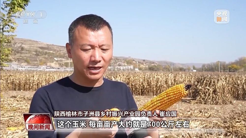陕西榆林市子洲县乡村振兴产业园负责人 崔应国:这个玉米每亩产出就是700公斤左右,我们用了新技术,新肥料,要高产25%以上。