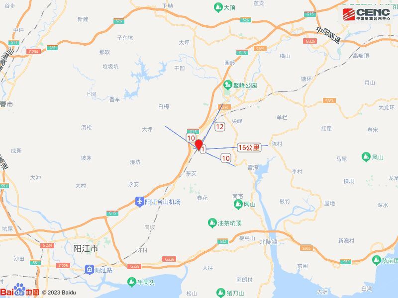 周边县城:震中距恩平市13公里、距阳东区34公里、距江城区39公里、距阳春市48公里、距开平市57公里,距阳江市37公里。