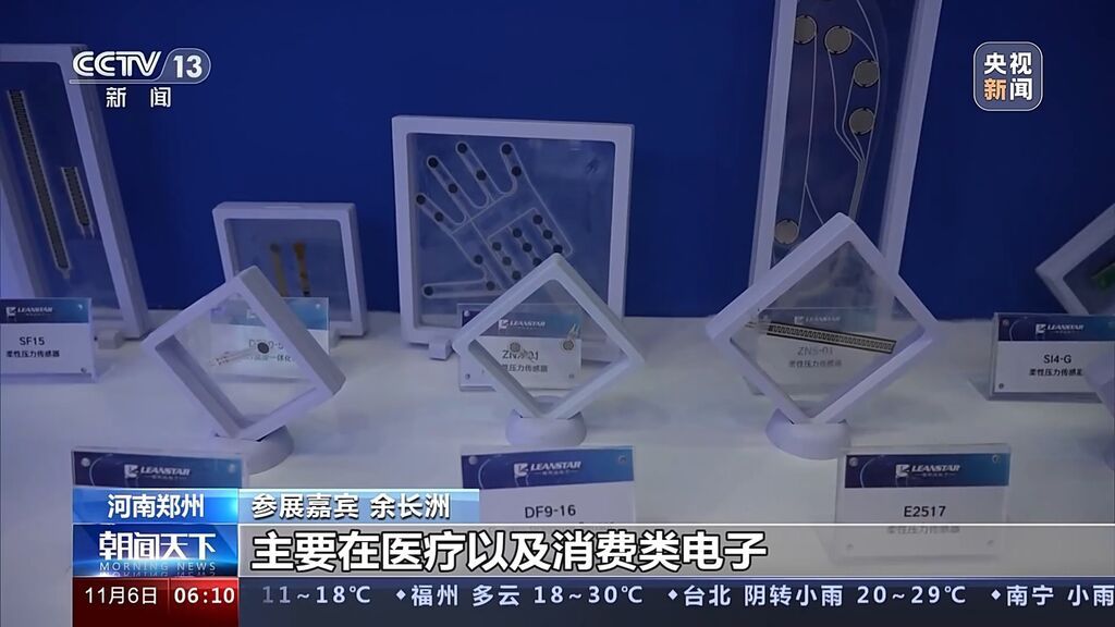 参展嘉宾 余长洲:我们柔性的压力传感器轻便、便于携带,以及耐弯折,目前的应用方向主要在医疗以及消费类电子,例如机器人、电动汽车、新能源汽车,应用方向是非常广泛的。