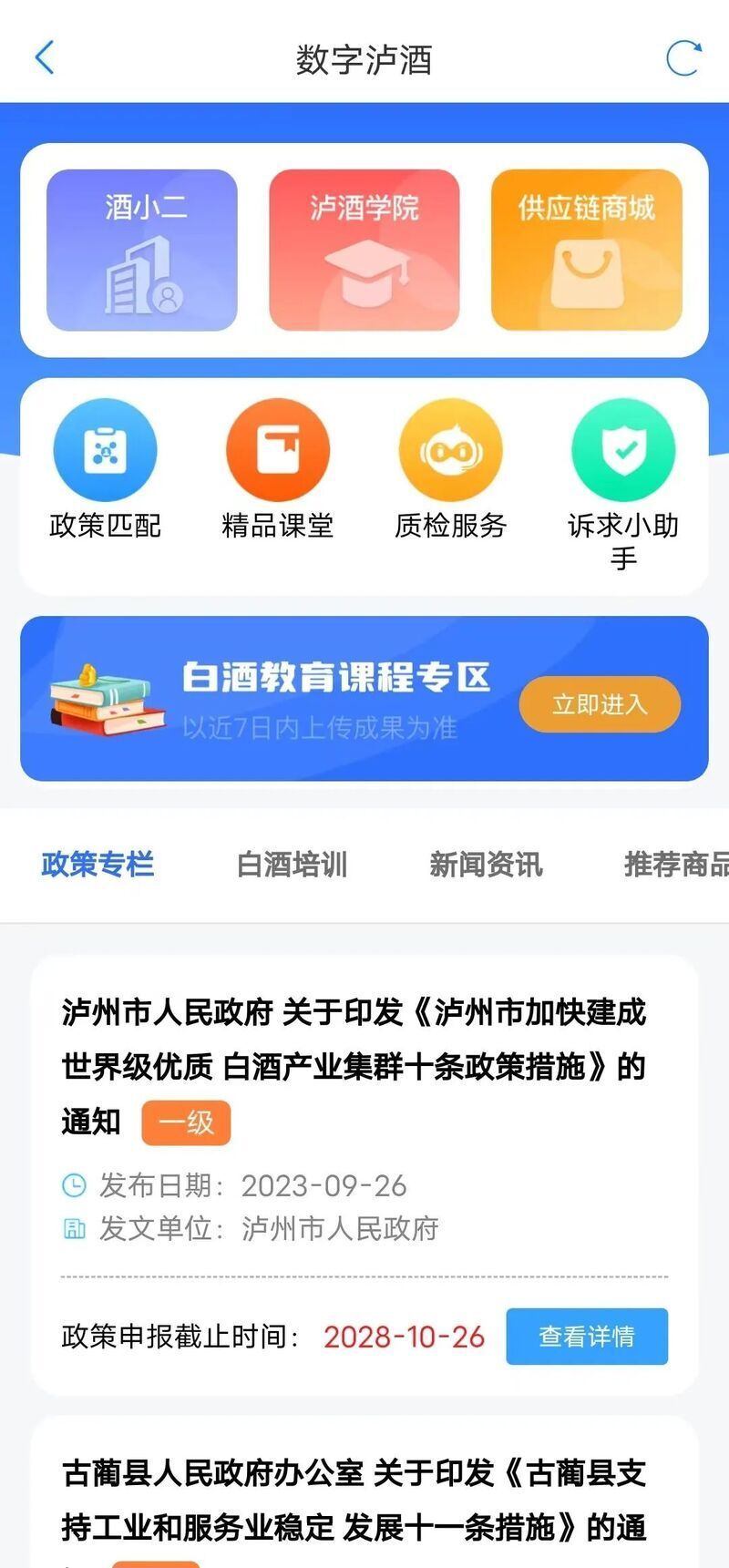 白酒产业作为中国传统酿造工艺的代表,面临着数字化转型的挑战和机遇。泸州市白酒产业大数据综合服务平台“数字泸酒”依托“酒城e通”,推出供应链商城、酒小二、泸酒学院等服务。利用数字技术拓展产业发展新赛道,提升传统白酒产业核心竞争力,助力白酒产业高质量发展。