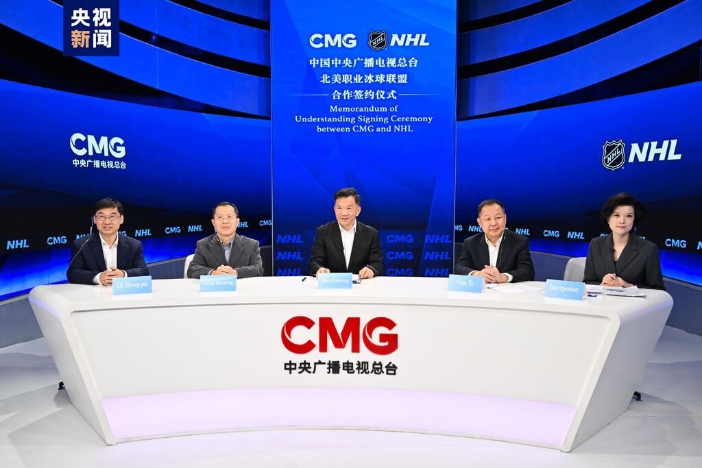 北美职业冰球联盟,中央广播电视总台总编室、体育青少节目中心、国际交流局、北美总站等相关部门负责人参加活动。
