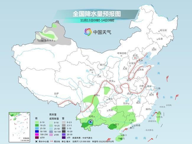 南方阴雨连连降水范围缩减 新疆雨雪频繁