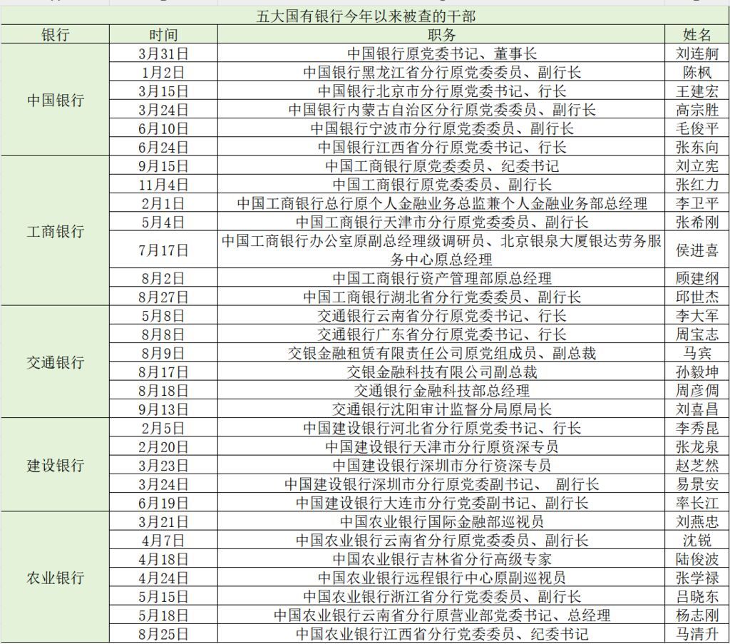 国有五大行31人被查