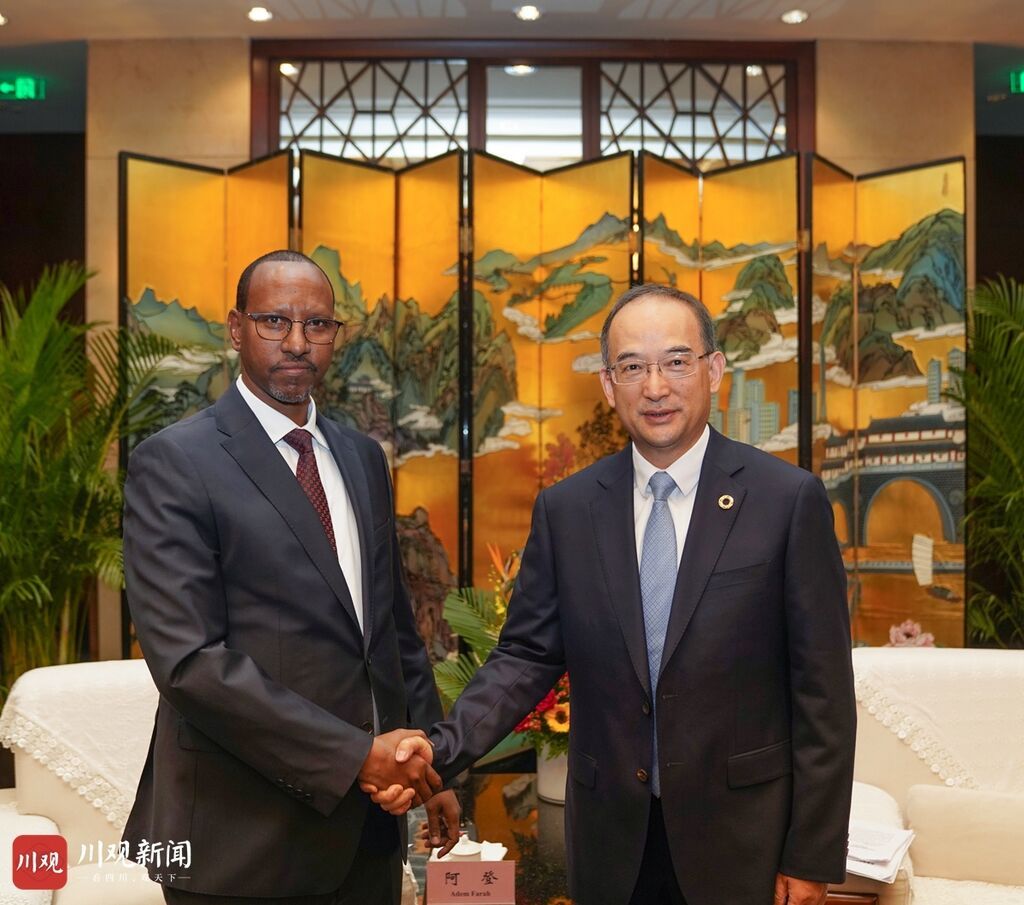 黄强代表省政府对阿登副主席来川访问表示欢迎,并简要介绍了四川发展情况。他说,在埃塞俄比亚总理阿比阁下来华出席第三届“一带一路”国际合作高峰论坛并访问四川后不到一个月时间,阿登副主席就率团访川,充分体现了埃方落实两国领导人重要共识、深化与四川友好交往的重视与支持。四川与埃塞合作潜力巨大,希望在两国领导人战略引领下,与副主席阁下携手努力,推动双方构建更加密切的交流合作机制,建立各层级友城关系,扩大基础设施、农业等领域务实经贸合作,鼓励支持更多高校、科研机构、文化团体开展交流交往,全面提升各领域合作水平,为两国高质量共建“一带一路”合作贡献四川力量。