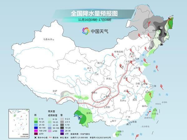 具体来看,今天,甘肃河西、陕西北部、内蒙古中东部、东北地区中北部、河北西北部、川西高原北部等地部分地区有小雪或雨夹雪,局地有中雪。辽宁大部、山东中东部、江淮大部、江汉、江南、西南地区东部和南部、华南西部和北部等地部分地区有小雨,局地有中雨。