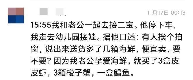 “他们说,自己是盒马鲜生与山姆超市供应链的司机,车上的海鲜都是今早拉到萧山的,为了私底下赚点钱,就偷偷拿出了几箱。”李女士回忆,这两个男人一边问她“要不要螃蟹”,一边就把冷链车的货箱门打开了。
