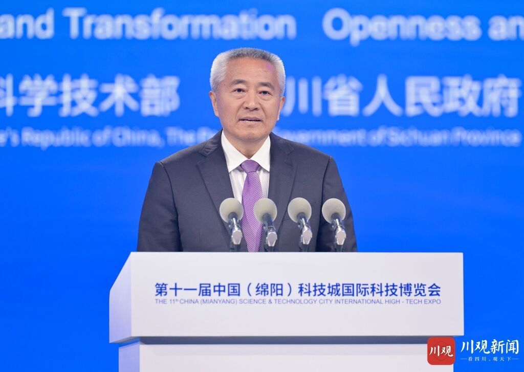 吴朝晖代表科技部预祝本届科博会取得圆满成功。他说,科技部将继续支持绵阳把科技创新作为高质量发展的逻辑起点,加快建设中国特色社会主义科技创新先行区。要聚焦国家战略任务,一体推进科研攻关和成果转化,为高水平科技自立自强贡献力量;深化科技体制机制改革,激发创新创业活力,营造具有竞争力的创新生态;强化区域创新开放合作,支撑和服务双循环发展新格局。希望与会嘉宾、参展企业借助科博会的平台,深入交流、凝聚共识、增进合作,共享前沿科技进展,共促科技创新和成果转化,更好赋能实体、服务社会、造福人民。