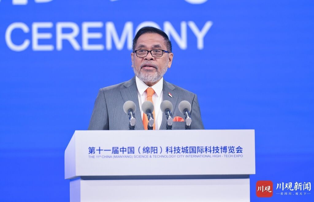 周浩黎在致辞中说,科学技术是推动人类进步和增进人民福祉的关键驱动力。中国作为全球科技大国,近年来在许多领域处于领跑地位,引领带动世界发生新的变革。四川和绵阳致力于科技创新创造,经济蓬勃发展态势给人留下深刻印象。没有科技创新就没有转型发展,就不能实现经济更好增长。在印尼制定的“2045愿景”中,推进科技创新是非常重要的内容,我们正聚焦发展绿色经济、海洋经济、数字经济、医药健康以及旅游业等组织开展科研创新。期待以担任本届科博会主宾国为契机,加强与中国及其地方间的合作,学习借鉴好的经验做法,促进双方科技合作取得丰硕成果。