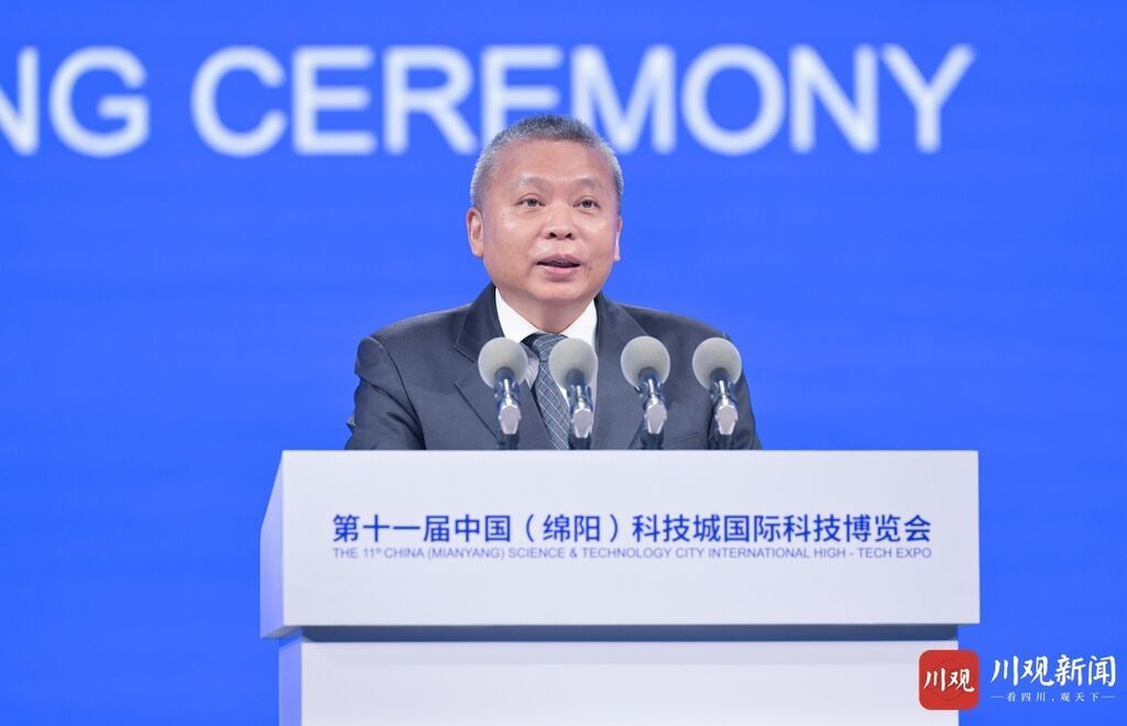 10时55分许,邵鸿宣布:第十一届中国(绵阳)科技城国际科技博览会开幕。