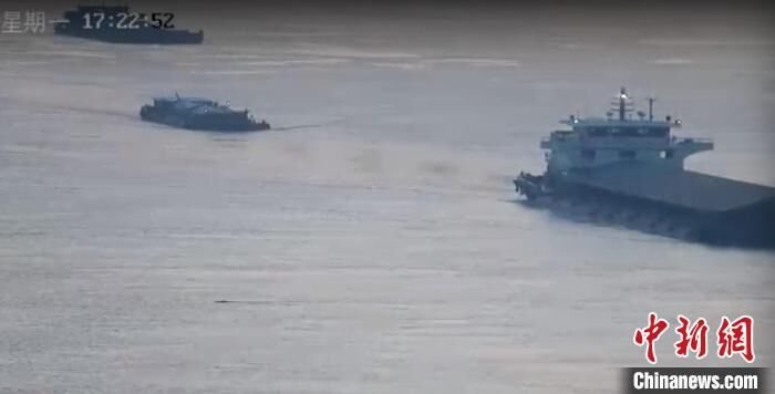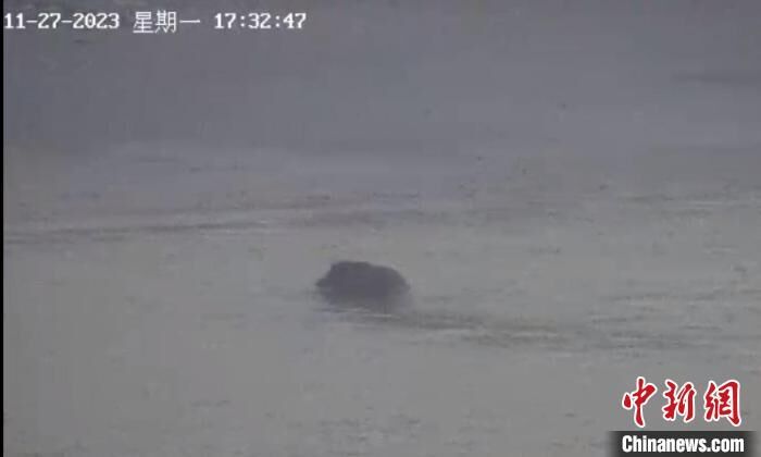 中新网南京11月28日电 (记者 朱晓颖)27日下午17时20分,南京海事局交管中心值班人员在通过长江三桥上的摄像头例行巡查时,意外地发现江面上有一大型动物在游泳。