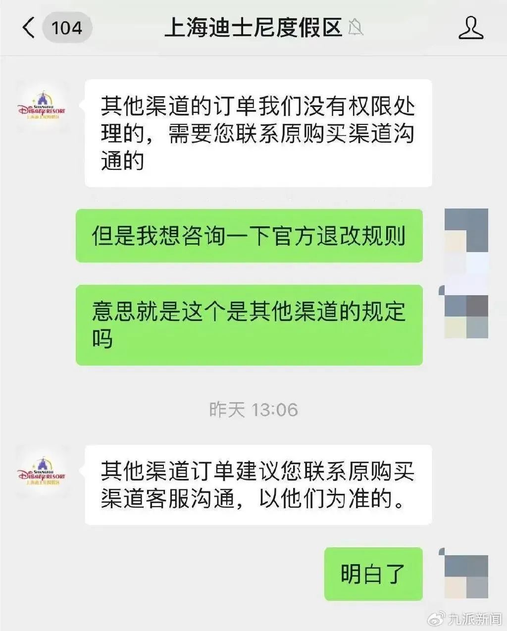 稍后,飞猪客服表示,具体凭证需以景区回复为准。上海迪士尼客服则称,通过官方渠道购买的门票无法退款,第三方平台的规则跟官方规则有所不同,“需联系原渠道确认。”