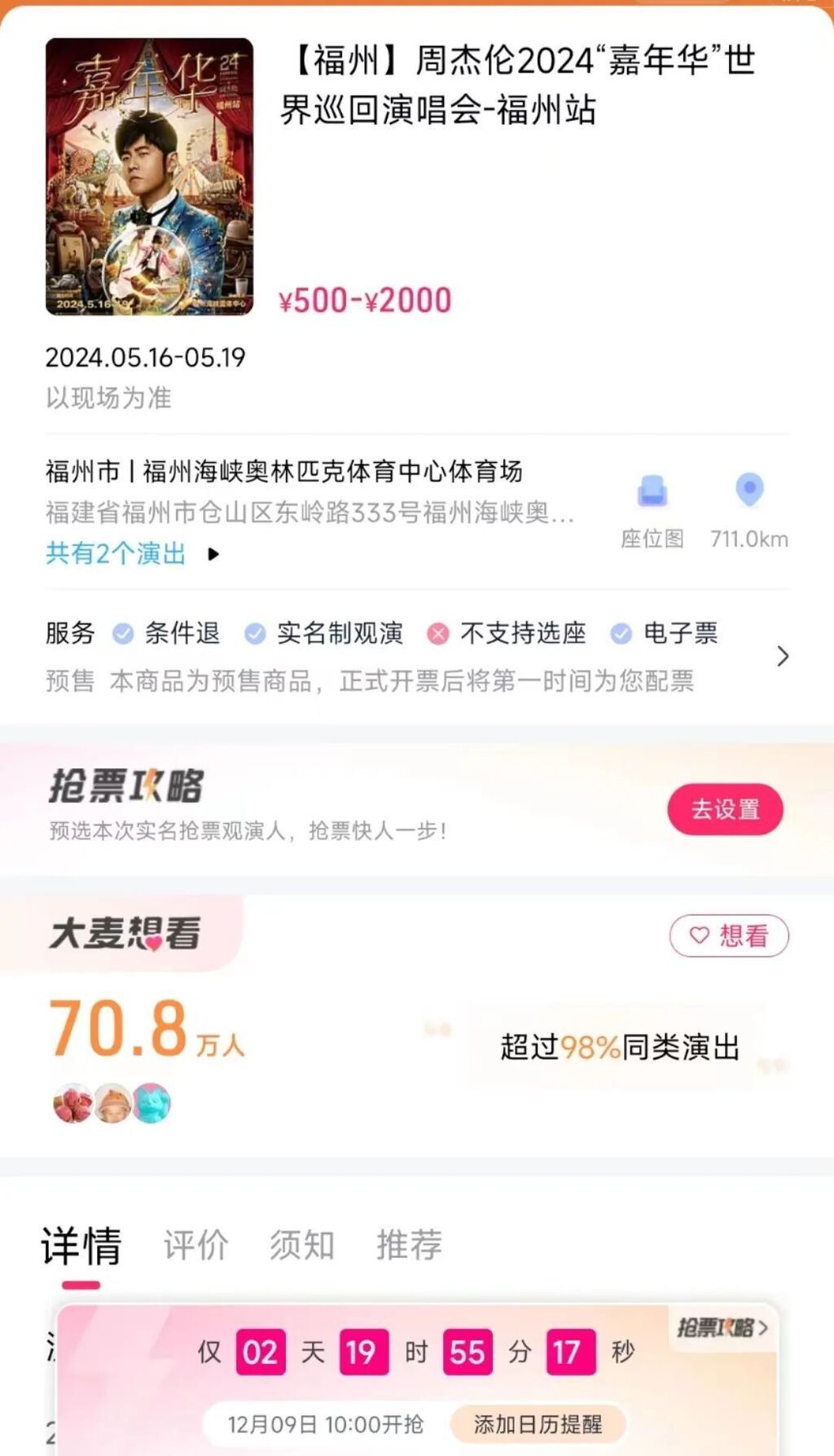 此前,多名网友发帖称,福州站演唱会提前半年就开始预售,且开启预售48小时后,退票将收取订单价格的30%手续费。