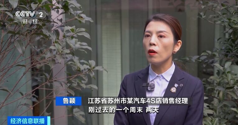 江苏省苏州市某汽车4S店销售经理 鲁颖:像刚过去的周末,单天的销售量平均在30台以上,营业额每日达到1300万元。