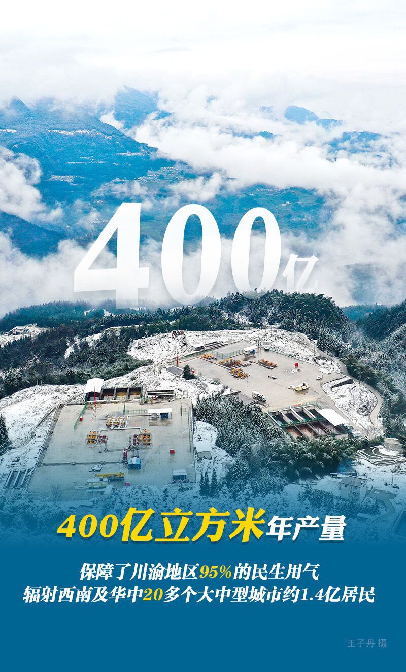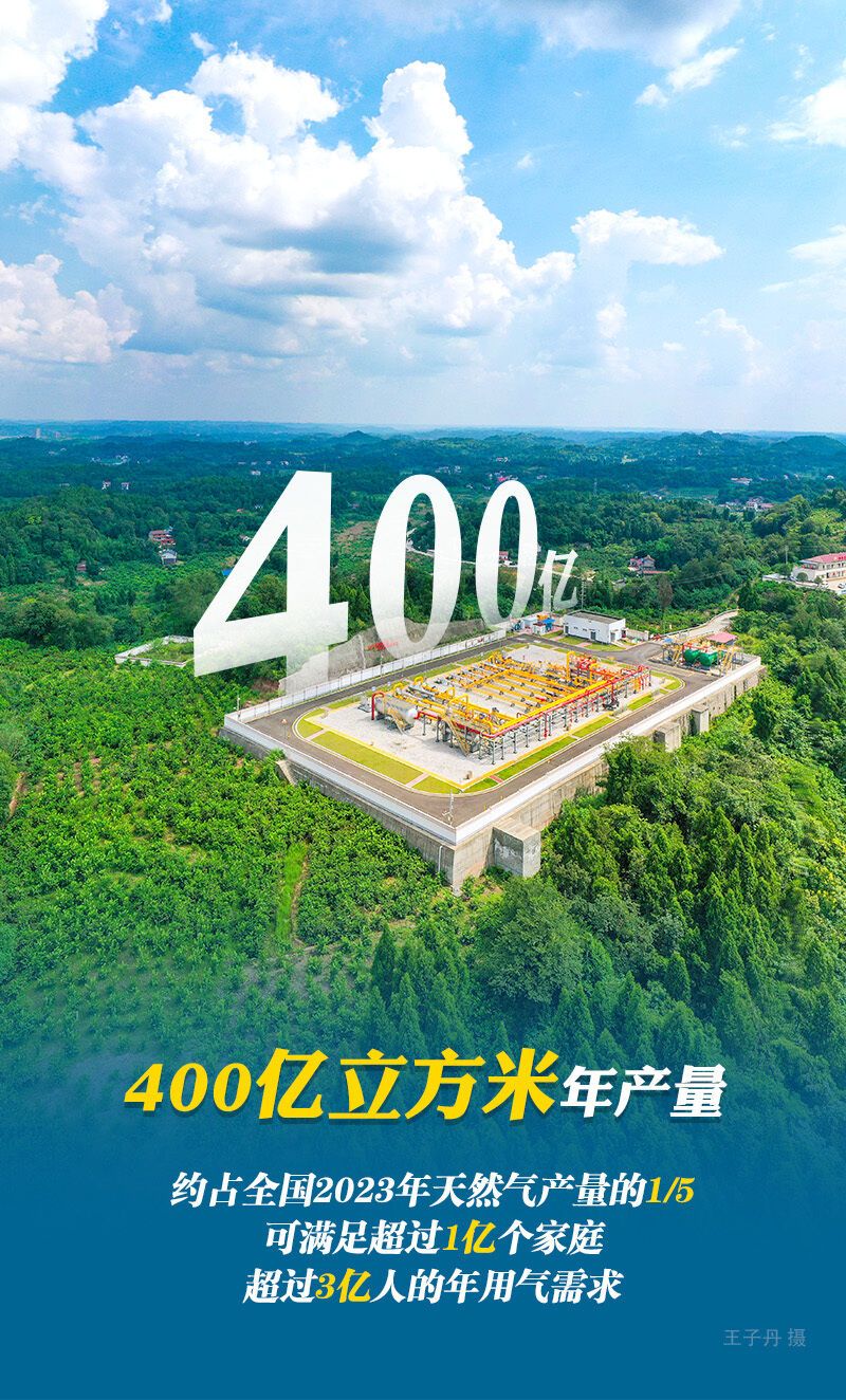400亿立方米是个什么概念?西南油气田公司执行董事、党委书记何骁介绍,其相当于2023年全国天然气产量的约1/5,按1户家庭日均用气量1立方米计算,可满足超过1亿个家庭、超过3亿人的年用气需求。一方面,是国家能源保供的压舱石,为持续降低天然气对外依存度作出突出贡献;另一方面保障了川渝地区95%的民生用气,辐射西南及华中20多个大中型城市约1.4亿居民,为温暖百姓炉灶提供强力支撑。