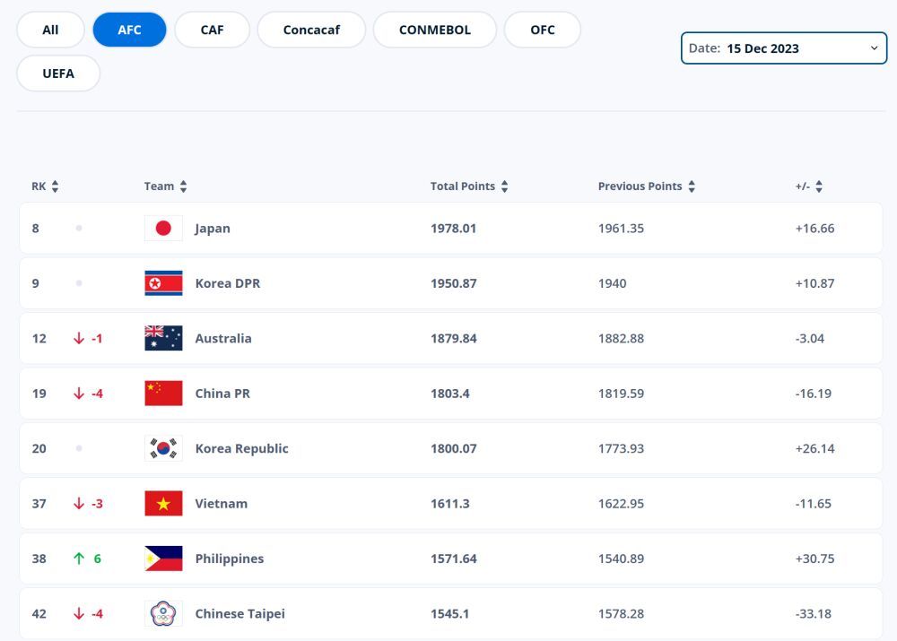 在亚洲范围内,中国女足目前排在日本队(第8位)、朝鲜队(第9位)和澳大利亚队(第12位)之后,排名第四。