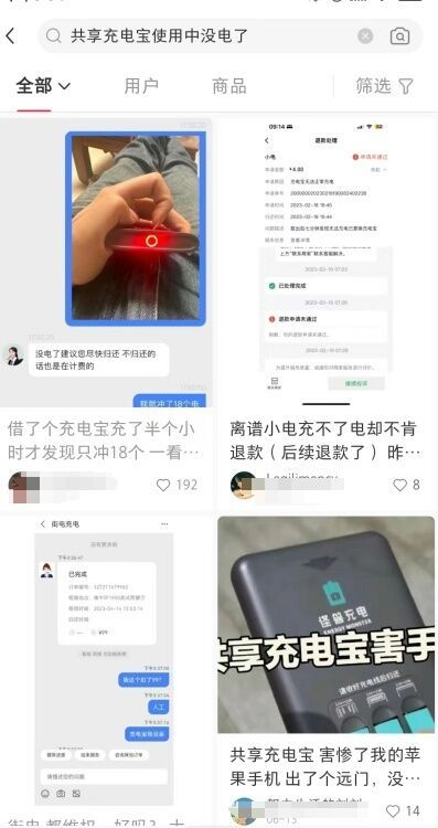 记者调查发现,共享充电宝使用中没电了却还在持续扣费的情况并非少数。记者在小红书平台搜索关键词“共享充电宝使用中没电了”,结果出现大量帖子反映此类问题。