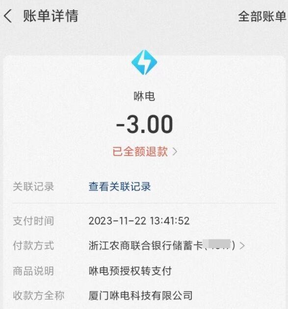 尤先生的订单明细显示,单价3元/60分钟,每24小时封顶30元,使用时长29分钟。“每小时3元的前提是充电宝电量充足,可以满足消费者使用,充电宝没电是商家的问题,不应该由我买单。”尤先生对记者说,他联系在线客服但需要排队等很久,就致电给电话客服,同时发起多方投诉,最终“咻电”给他申请了退费。