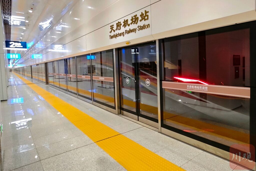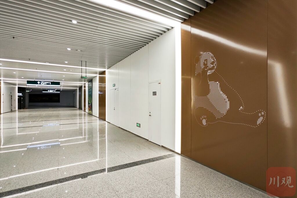 天府机场站位于成都东部新区,总建筑面积11.15万平方米,分为地上两层、地下两层,站场规模2台6线。在天府机场站大厅内,梁柱、地面设计有蜀道纹、大熊猫等主题元素,充分展现出古蜀独特文化韵味,站房整体又极具流动感、现代感,运用了科技创新技术手段,实现了传统和现代的完美融合。