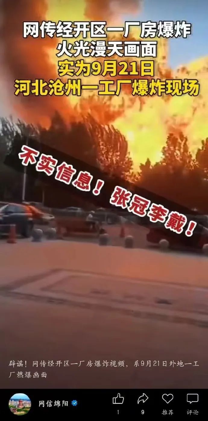 经查,该视频系9月21日河北沧州爆燃事故视频,张某的行为已构成散布谣言扰乱公共秩序的违法事实,绵阳市公安局经开区分局依法对其作出行政拘留2日的处罚。