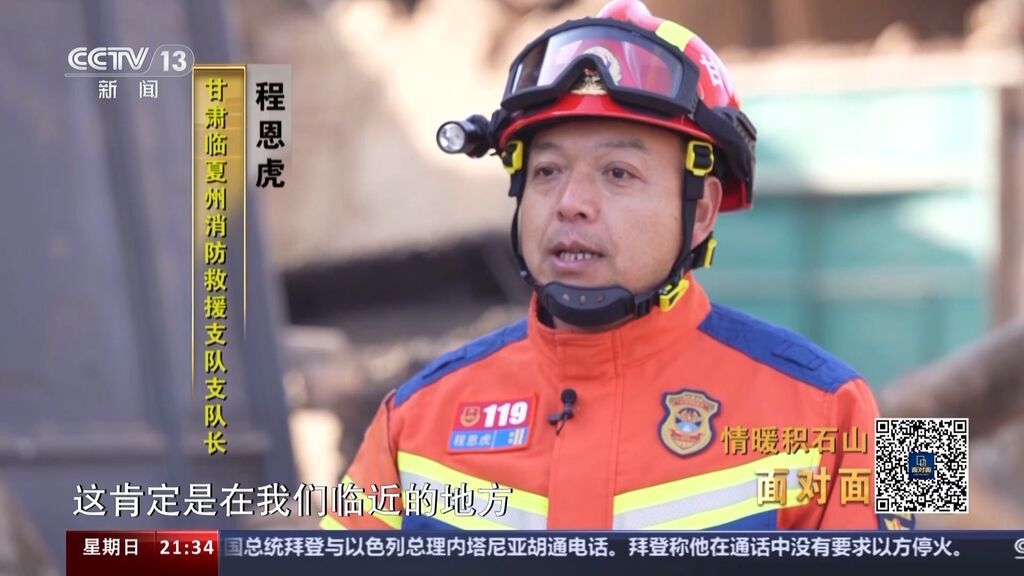 程恩虎:当时就发现咱们好多老百姓的房屋大范围倒塌,老百姓都从家里出来在空旷的地方聚集,特别是好多老百姓穿的衣服非常少,而且晚上的气温特别低。老百姓看到咱们消防指战员特别是救援人员到场之后,给了他们很大的信心和力量。