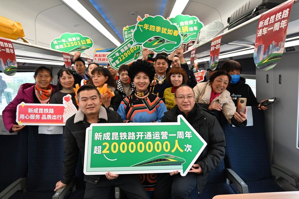 12月26日,新成昆铁路开通运营一周年。12月25日,记者从中国铁路成都局集团有限公司获悉,过去的一年,新成昆铁路日均开行41趟旅客列车,单日最高发送10.4万人次,年累计发送旅客突破2000万人次。