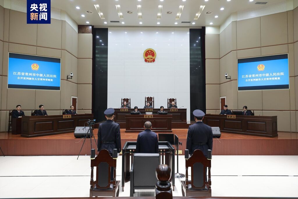 2023年12月27日,江苏省常州市中级人民法院一审公开宣判河南省委原常委、政法委原书记甘荣坤受贿一案,对被告人甘荣坤以受贿罪判处无期徒刑,剥夺政治权利终身,并处没收个人全部财产;对甘荣坤受贿犯罪所得及孳息依法予以追缴,上缴国库。