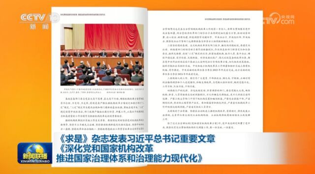 7月16日出版的第14期《求是》杂志发表了中共中央总书记、国家主席、中央军委主席习近平的重要文章《深化党和国家机构改革推进国家治理体系和治理能力现代化》。