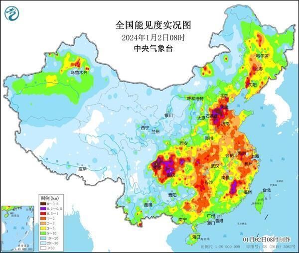 2023年12月27日夜间起,我国出现今冬以来最强雾、霾过程,截至今天大雾预警已连发7天。大雾最严重时段为12月28日至30日的上午时段,中央气象台一度发布级别最高的大雾红色预警,河北东南部、山东西北部和南部、江苏、安徽中部、重庆中部等地现强浓雾,局地出现能见度不足50米的特强浓雾;同时,天津、河北中南部、山东西部、河南北部等地遭重度霾天气。