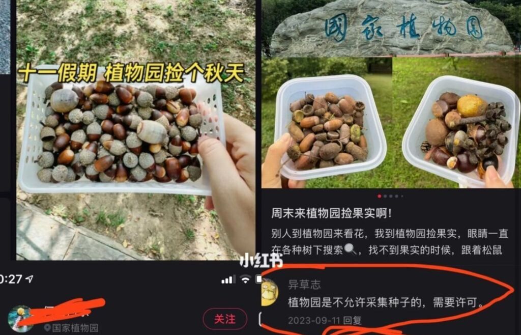 “趁假期,到植物园捡个秋天。”“周末到植物园捡果实,满载而归。”近日,有博主在社交平台上分享在植物园里捡拾果实的经验,引得不少网友效仿,甚至还有人打起了树上果实的主意,引起不少植物爱好者的不满,“植物园都被你们薅秃了,能不能给小动物们留些口粮。”