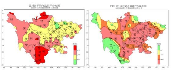 据四川省气候中心监测,2023年12月,全省平均气温7.1℃,较常年同期偏高1.0℃,位列历史同期第四高位;全省平均降水量1.8毫米,较常年同期偏少8成,位列历史同期第一少位。