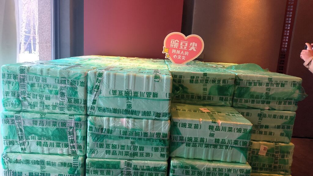 1月13日,1588公斤豌豆尖搭乘川航3U8471号航班,从成都飞往哈尔滨。