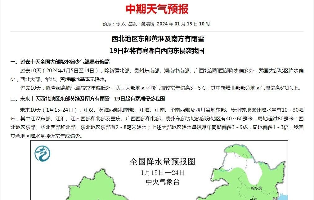 中央气象台最新的中期预报已经给出“寒潮”的提示。