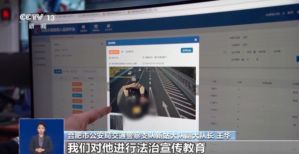 合肥市公安局交通警察支队新站大队副大队长 王华:应该是一个摩托车的“发烧友”,在处罚完了以后我们对他进行法治宣传教育。