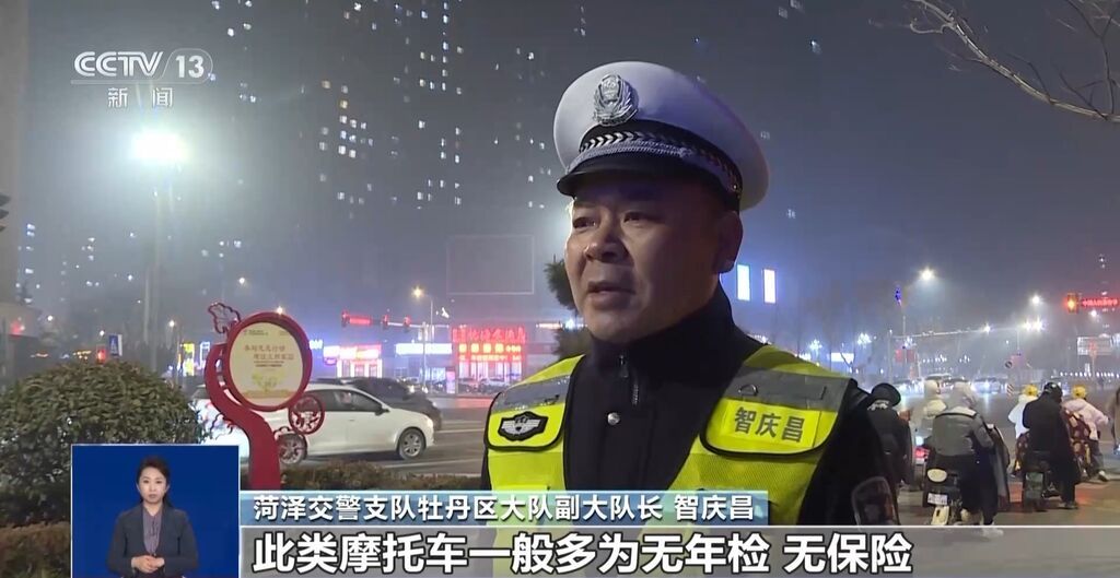 菏泽交警支队牡丹区大队副大队长 智庆昌:此类摩托车一般多为无年检、无保险、无牌的三无产品,大多经过非法改装,噪声大、速度快,安全系数低。在无牌无证的情况下,一旦发生交通事故,对家庭、对社会都会造成极其恶劣的影响。