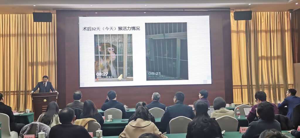 “截至今天,猴哥‘江江’已存活32天。”在分享交流中,内江特聘专家、南京医科大学附属苏州医院教授李巅远介绍了基因编辑猪-猴异种心脏移植相关情况,并在现场视频展示了猴哥“江江”的情况。