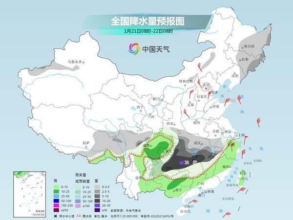 后天,内蒙古东北部、黑龙江北部、新疆沿天山地区、江南大部、贵州、云南东北部、广西东北部等地部分地区有小到中雪或雨夹雪,其中,湖南南部、江西中南部、福建西部等地部分地区有大雪。四川盆地、云南中南部、华南大部等地部分地区有小到中雨。
