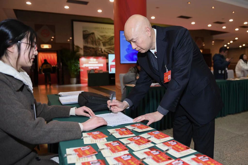记者在报到点看到,委员们陆续到来,登记,领取证件、材料……完成报到手续后,不少委员聚在一起交流各自的提案内容,现场秩序井然。