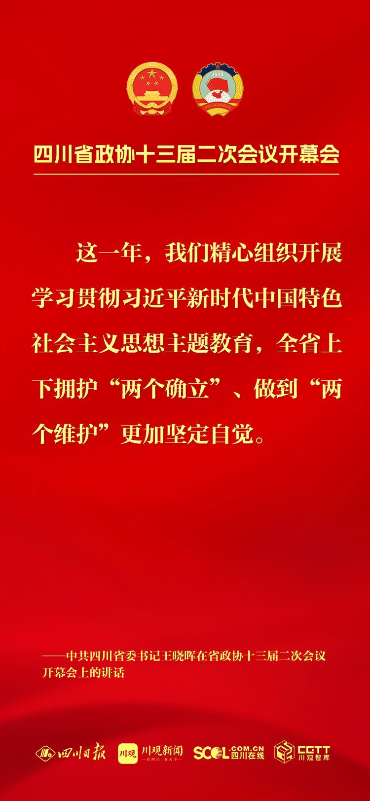 1月21日上午,政协四川省第十三届委员会第二次会议在成都开幕,中共四川省委书记王晓晖讲话。