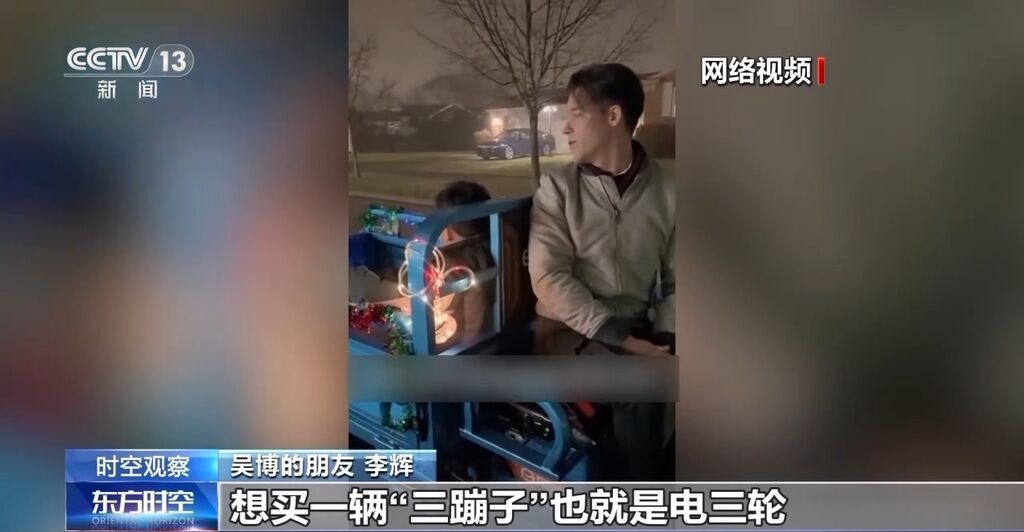 吴博的朋友 李辉:我朋友(吴博)联系我说要给国外的公公准备一个节日礼物,想买一辆“三蹦子”也就是电三轮,我觉得挺有意思的。其实在美国那边的很多朋友都想买这个电三轮,操作起来非常便捷,而且使用成本也比较低。