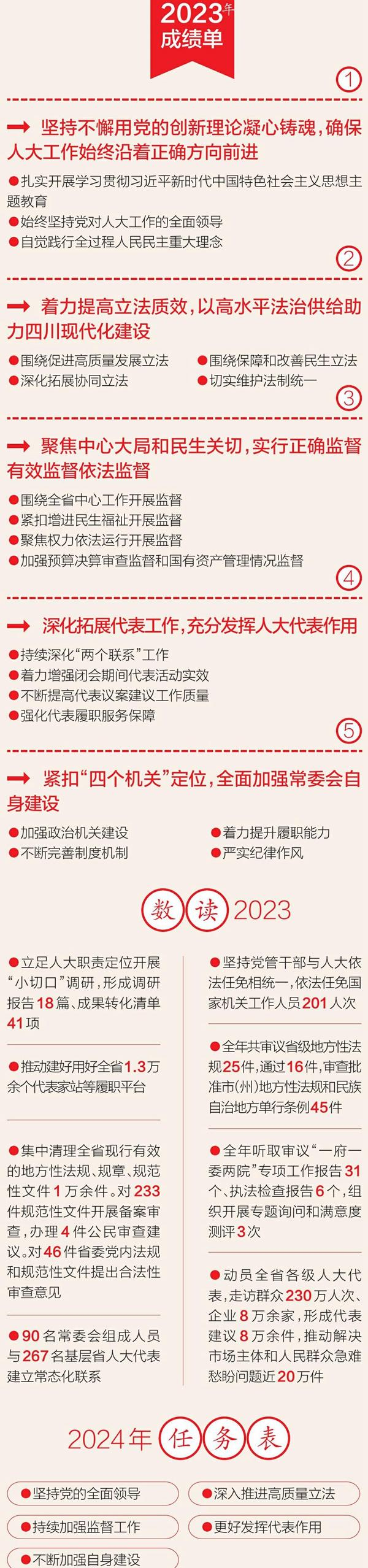 省人大代表、泸州市人大外事侨务民族宗教委员会主任委员宋远平表示,过去一年,省人大常委会全力支持代表履职,不断加强自身建设,扎实推进全过程人民民主四川实践,为推动全省经济社会发展和民主法治建设,广泛凝聚智慧和力量,向全省人民交上一份合格答卷。