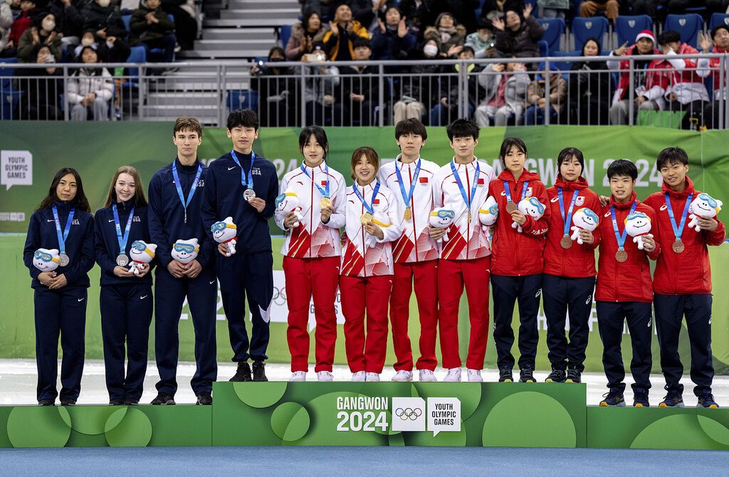 1月24日,2024年韩国江原道冬青奥会短道速滑混合团体接力A组决赛,由李金恣、杨婧茹、张柏浩和张心喆组成的中国队以2分46秒516的成绩夺得冠军。美国队与日本队分获二、三名。
