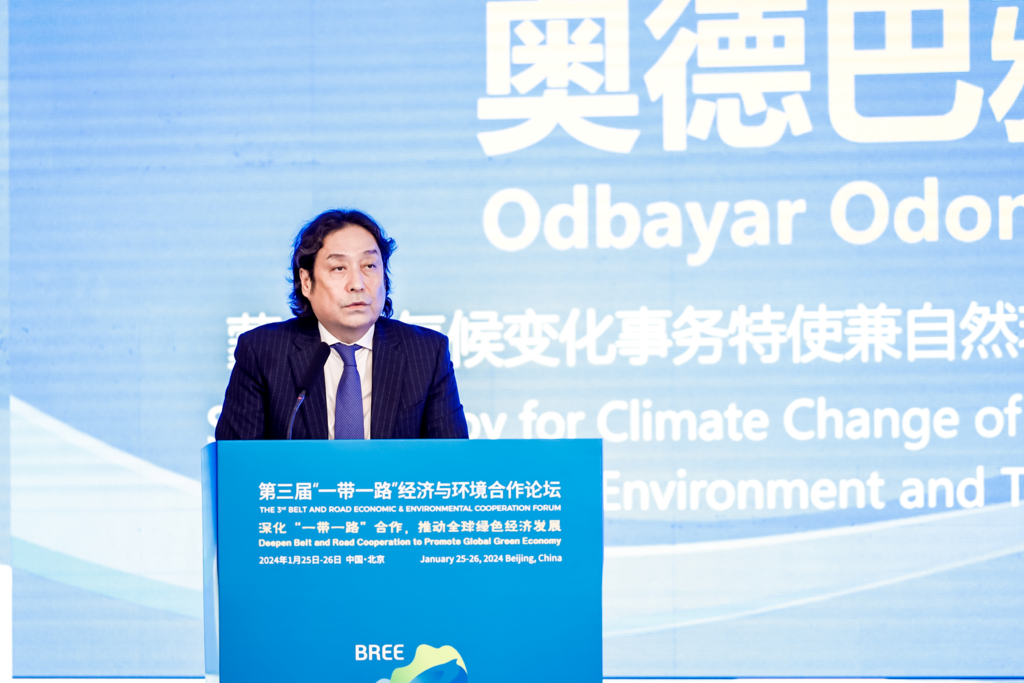 蒙古国气候变化事务特使兼自然环境与旅游部部长顾问奥德巴雅尔主旨报告中表示,希望通过论坛达成最广泛的合作。包括引进最先进的技术、中国和蒙古国之间大规模全球可再生能源的合作、建立市场机制,更好地使用双边资源等。同时,也希望在更好实现可持续的发展方面向中国学习。他说:“‘一带一路’给我们一个独一无二的机会,可以促进全球层面上的合作,实现全球的可持续发展。我们非常愿意能够共同建立一个可持续生态友好型的未来。”