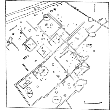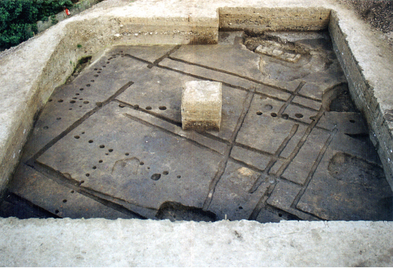 发掘者认为,这18座房址之间存在叠压打破关系,应属于不同时期建筑,其中早期房址平面呈圆形或方形,晚期房址平面呈长方形,四周墙基挖沟槽,沟槽中立木柱,再编缀木(竹)棍(条),最后涂抹草拌泥形成木骨泥墙,墙似经火烧烤,房架推测为竹、木结构,房顶覆盖草。此类建筑与川西平原一直延续到近代的茅草顶房极为相似。
