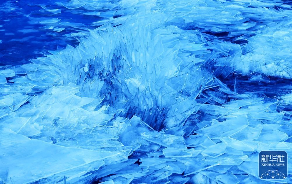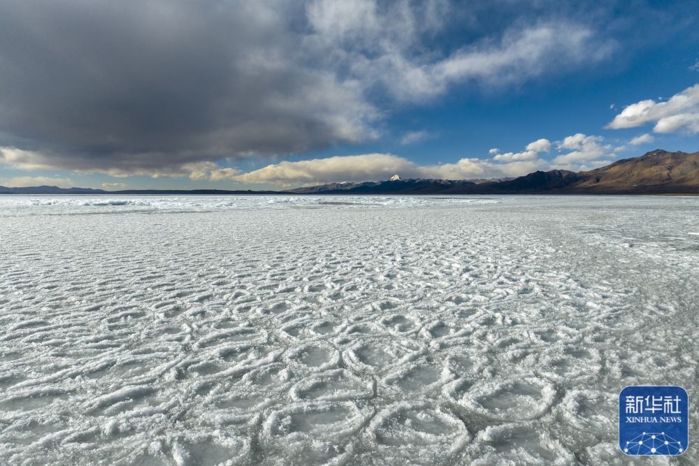 冬日,玛旁雍错湖面上的冰如同碎玻璃一般,层层叠叠地堆积在一起,呈现出各式各样的造型。在阳光的照射下,这些堆积冰分外透亮,景象壮观。