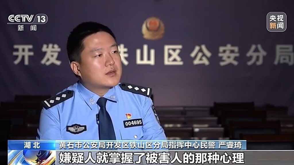 黄石市公安局开发区铁山区分局指挥中心民警 严睿琦:嫌疑人就掌握了被害人的那种心理,就是想贪小便宜赚大钱的那种想法。