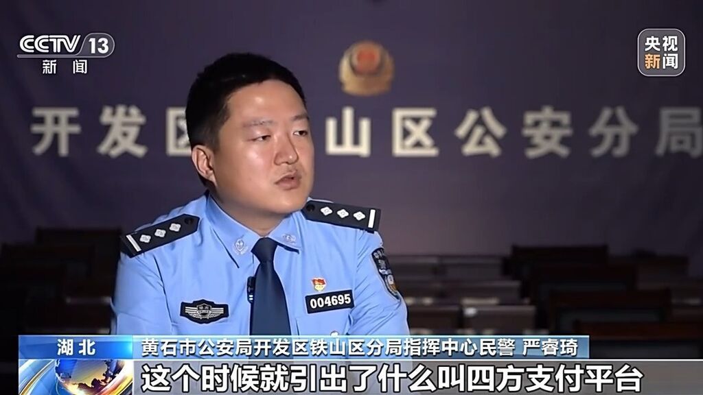 黄石市公安局开发区铁山区分局刑侦大队民警 喻缅:四方支付平台主要是依托于第三方支付平台支付的接口,它主要是通过大量收买空壳公司,使用这个公司的银行账户,在第三方支付公司开户,开户之后,然后聘请相关的技术人员通过写代码,挪用这个支付接口。
