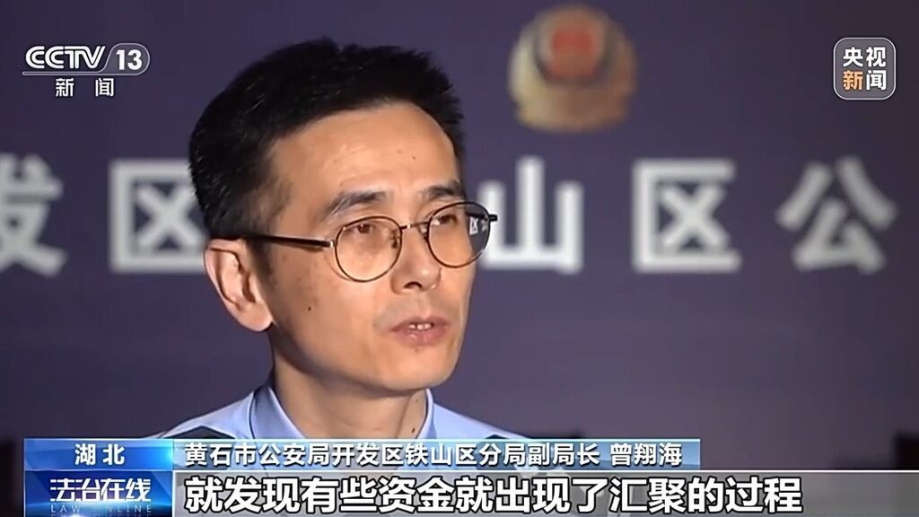 黄石市公安局开发区铁山区分局副局长 曾翔海:一层层往后追溯,追溯了以后就发现有些这个越往后追,就发现有些资金就出现了汇聚的过程,实际上他们是在搞虚拟币的买卖。