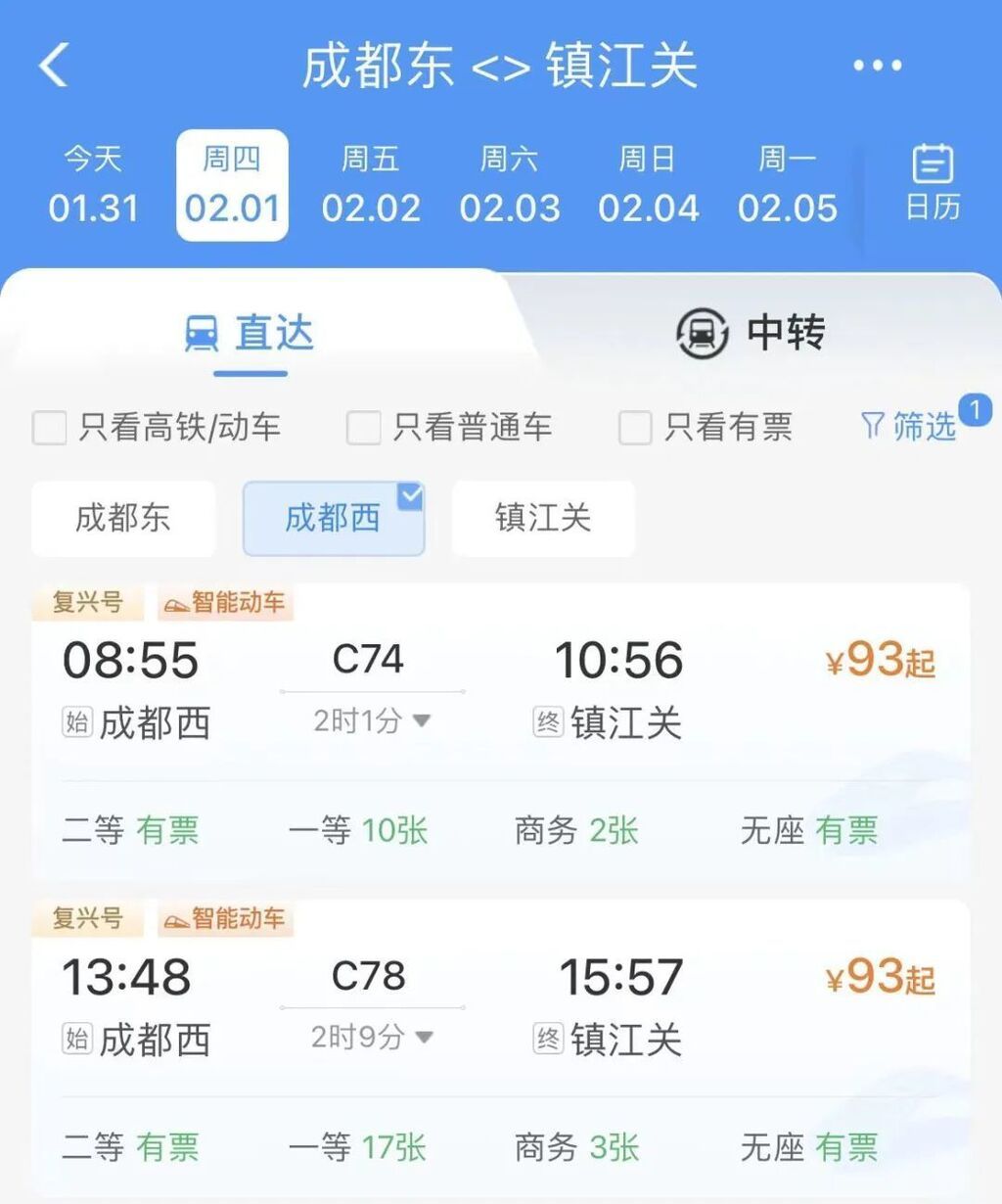 成都西至镇江关C74次列车,成都西08时55分开,镇江关10时56分到。