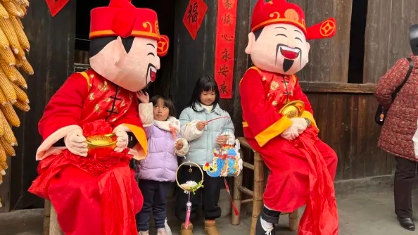 行走在新添驿站古韵悠长的老街内,高挂的红灯笼显得格外喜庆,转角还可能与民俗撞个满怀。舞龙、舞狮、川剧变脸、传统京剧表演接连不断。长街宴席间,“财神”来回穿梭,为游客市民送上祝福红包,现场游园对诗、猜灯谜、乐队演出等一系列精彩活动,让市民游客置身于传统新年的浓厚氛围之中。