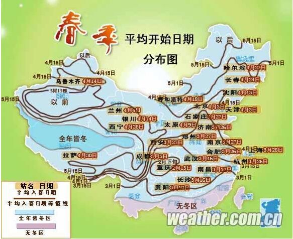 中国幅员辽阔,地理条件复杂,各地气候相差悬殊。因此,全国不同地域迎接春季的时间也大不相同。